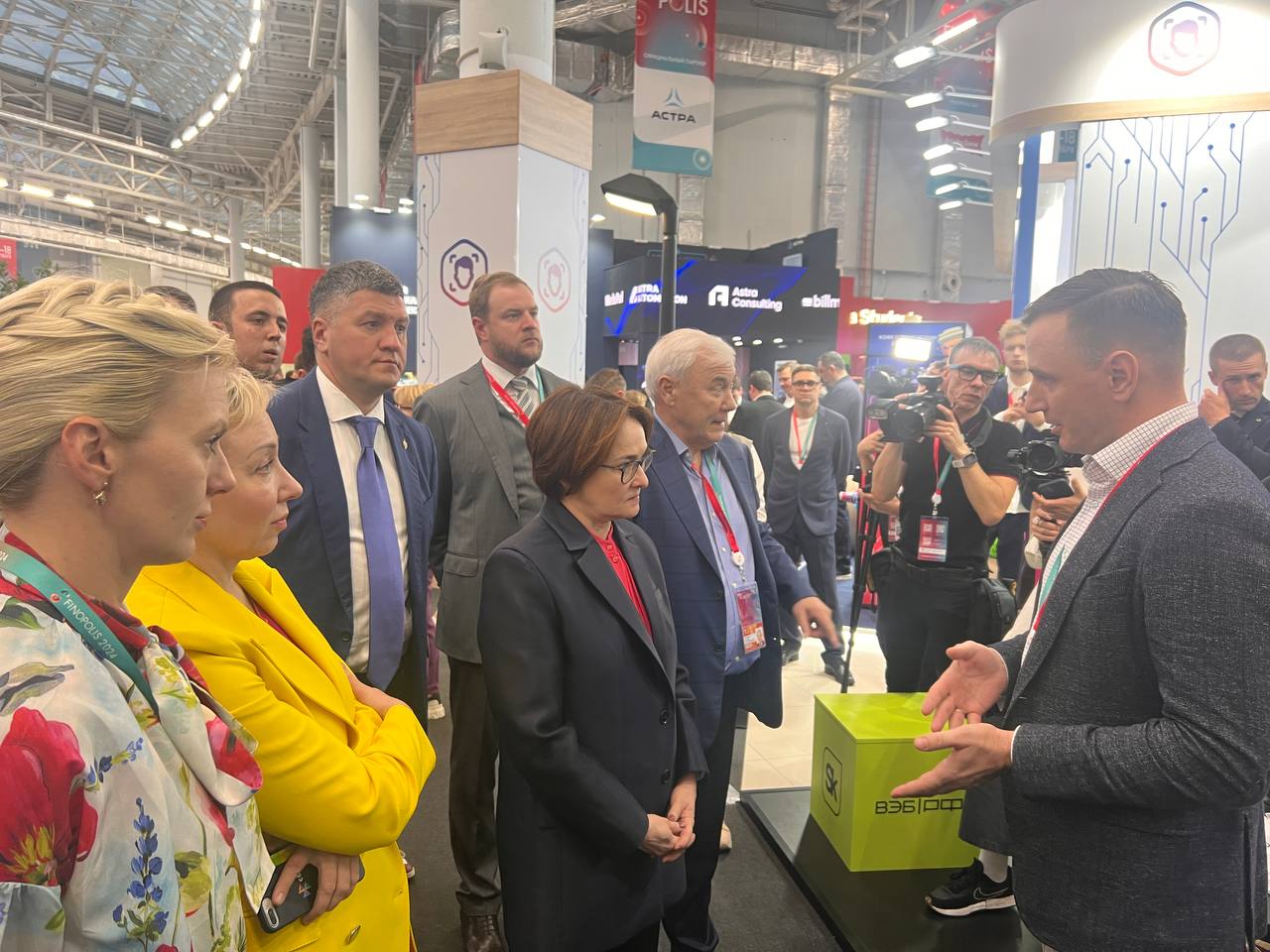 17 октября стенд посетили Эльвира Набиуллина, председатель Цб РФ, и Анатолий Аксаков, депутат ГД.